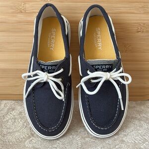 Brand New Sperry Top-Sider Hook & Loop Navy Nautical Boat Shoes Lace Up Loafers
