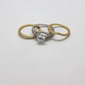 Take a risk with our Brand New Sterling Silver 925 3pcs Gemstone Ring! The two gold-dipped bands add a touch of daring luxury, while the silver band with a sparkling gemstone in the center adds a unique and bold touch. This ring is perfect for those who seek adventure and crave to stand out.