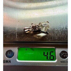 Brand New Sterling Silver 925 Adorable Cat Kitten Pendant Charm with Clear Crystal Ball, 4.6 Grams, Marked 925, No Chain