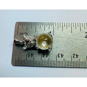Brand New Sterling Silver Adorable Cat Kitten Pendant Charm Clear Crystal Ball