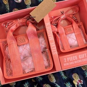 Brand New Steve Madden 2-Piece Set Mini & Micro Crossbody Purse Clear Coral