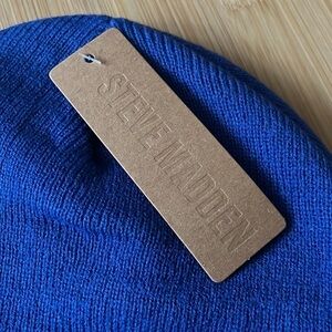 Brand New Steve Madden Blue Knit Beanie Hat w/ Rhinestone Beaded Heart