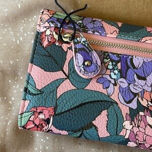 Brand New Steve Madden Pink Floral Print Box Logo Bar Silver Tone Trifold Wallet. Beautiful!