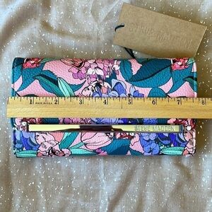 Brand New Steve Madden Pink Floral Print Box Logo Bar Silver Tone Trifold Wallet