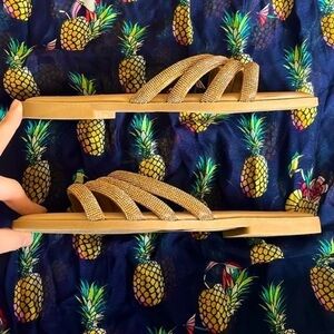 Brand New Steve Madden Rhinestone Multi-Strap Slip-On Sandals Bling Snazzy Bronze Slide. Women’s size 9.5. No box. So pretty & sparkly—absolutely gorgeous in the sun! Perfect for summer!
