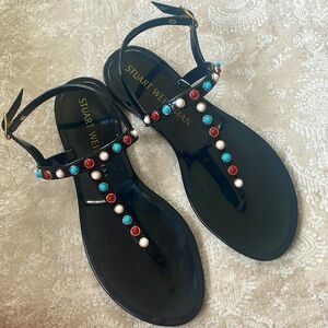 Brand New Stuart Weitzman Gemstone Beaded Thong Jelly Sandals Slingback Black. Women’s size 8. Gorgeous embellished design. No box. Classy & stylish!