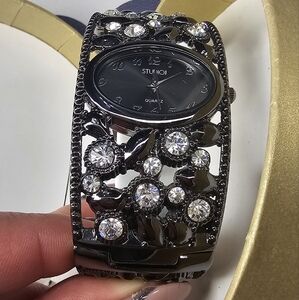 Brand New! Studio Time black w/Rhinestones Bangle Bracelet Watch