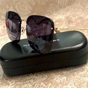 Brand New The Marc Jacobs Square Sunglasses w/ Gold Tone Metal Heart Shaped Rim