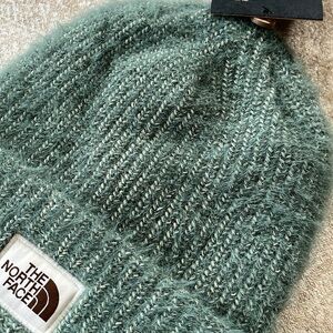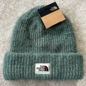 Brand New The North Face Salty Bae Lined Beanie Dark Sage Cuffed Knit Logo Hat. Cozy & warm!