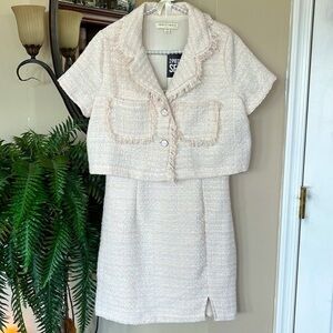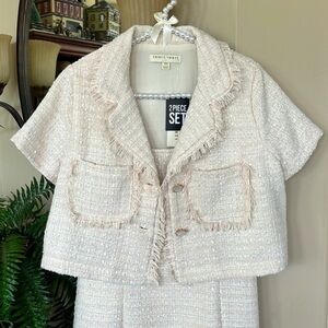 Brand New Thirty/Thirty LA Cream Tweed Minidress & Cropped Blazer Suit Jacket