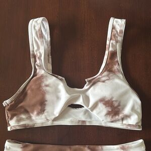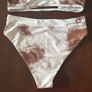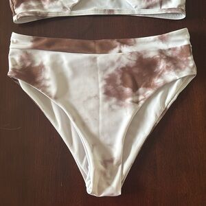 Brand New Tie Dye High Waisted Bikini Set White Brown 2-Piece Swimwear Bra Cups.