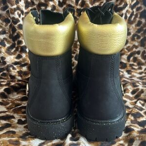 Brand New Timberland 6" Leather Black & Gold Metallic Lace Up Hiking Boots. Women's size 8. No box. Stunning!