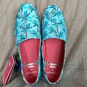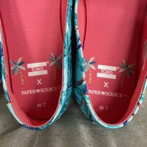 Brand New Toms Alpargata Soft Blue Paper Source Palm Trees Print Slip On Shoes. Limited Edition. Women's sizes 7 and 8.5 are available. No box. Super pretty!