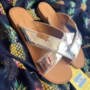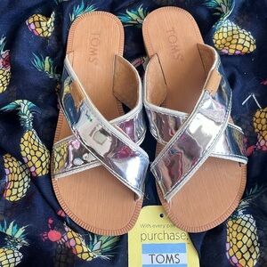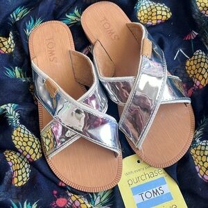 Brand New Toms Youth Viv Criss Cross Slides Silver Specchio Sandals Metallic. Girls size 13. No box. Pretty!