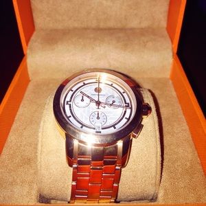 Selling a brand new, never worn Tory Burch watch! Went a little crazy Black Friday shopping & got this watch for a steal! But like I said, went a little crazy (haha) so I have to sell/return a couple things. The plastic is still on the face of the watch (as you can probably see in pics) I bought for $297 which was 40% off original price of $495 (reason y I couldn't resist buying this!). Selling here for $297, exactly what it was on sale for on Black Friday. Snag before it's gone! Questions?Ask(: