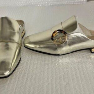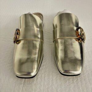 Brand New Tory Burch sz 8 Sidney Metallic Leather Backless Loafers