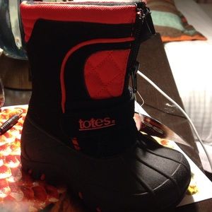 Totes boots for toddlers, black and red is a unisex boot . both boots are size 5