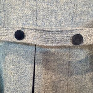 Brand new pale blue wool coat. Made in Moon's Shetland Twill, this 100% wool classic coat features a classic Peter Pan Collar with Fine Blue Velvet piping and matching velvet covered buttons. Moon's is one of the last remaining vertical wooden mills in Great Britain . Designed in England and made in Europe.