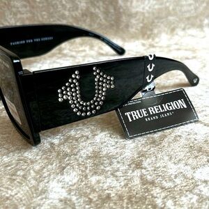 Brand New True Religion Oversized Black Square Sunglasses w/ Rhinestone Logo. Absolutely gorgeous!