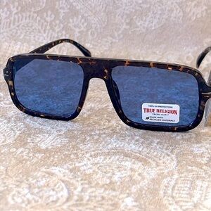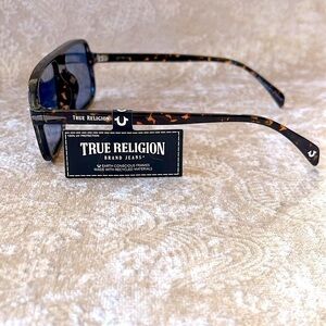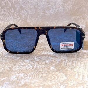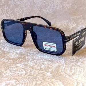Brand New True Religion Tortoise Shell Retro Aviator Shield Sunglasses Blue Lens. Stylish!