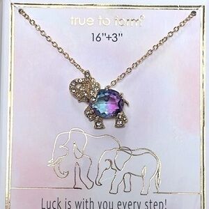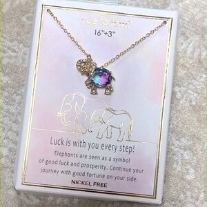Brand New True to Form Elephant Rhinestone Gold Tone Necklace Luck Prosperity. Gorgeous blue purple stone in the center! 16” + 3” Extender. No box. Makes a fantastic gift! So pretty & eye-catching!