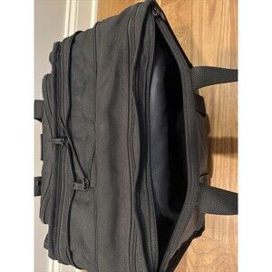 Vintage Tumi black Safecase deluxe organizer expandable computer ballistic nylon briefcase. Style 2622. 2622D3. Genuine ballistic nylon. Measures 17.5" x 13" x 6 1/2". Three main zippered compartments. One, you unzip to three file folder storage. The center compartment unzips to a padded laptop/notebook bed. The third opens up to a ton of storage with zippers and Velcro pockets. The front of the bag has four zippered pockets as well.