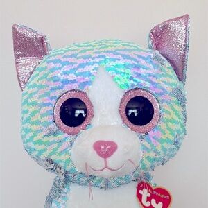 Brand New Ty Flippables Whimsy the Cat Sequins Large 16" Plush Stuffed Animal