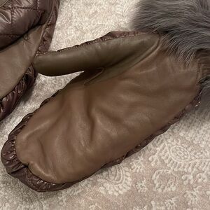 Brand New UGG Quilted All Weather Touchscreen Mittens Leather Palm Shearling Sheepskin Real Fur Cuff. Women's size L/XL. So pretty!