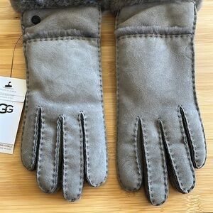 Brand New UGG Sheepskin Handsewn Seamed Gloves Gray Touchscreen Leather Trim w/ Real Fur Cuff. Water resistant. Women’s size Small and Medium available. Makes a fantastic gift!