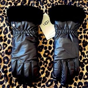 Brand New UGG Water Resistant Smart Touchscreen Black Gloves w/ Genuine Leather. Shearling sheepskin real fur cuffs. Women's size S/M and L/XL available. Makes a great gift! Stylish & cozy!