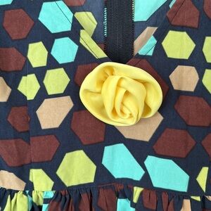 Brand New Unique Vintage Smak Parlour Brown Yellow Geometric 70s Mod Dress