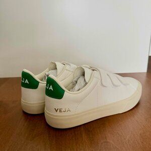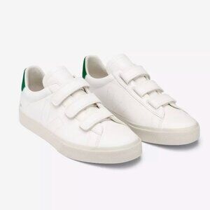 Brand new, discontinued Veja sneakers with velcro straps, stitched V and green tab in the back.