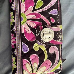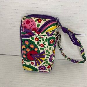 This is a beautiful brand new Vera Bradley coin and key purse. It’s floral and blue, and has two pockets – one zippered for coins, and one partially zippered to keep your keys attached to a clip.