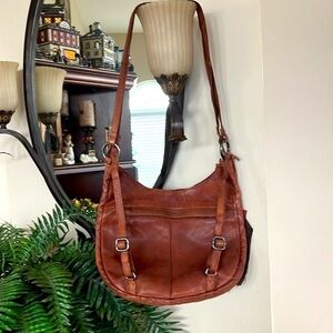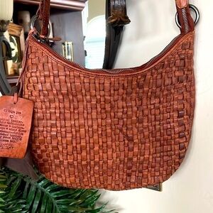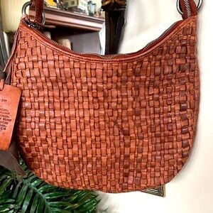 Brand New Vilenca Holland Genuine Leather Cognac Woven Zippered Hobo Purse Backpack.