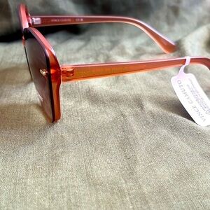 Brand New Vince Camuto Oversized Cat Eye Sunglasses Translucent Frame Gradient Lens. 100% UV Protection. Please note minor scratch on left eye lens. Gorgeous!