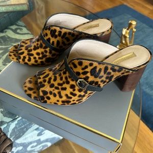 Beautiful Never Worn in Box Vince Camuto size 7.5 leopard print Sandals with Decorative Side Buckle. 3 inch heel. Non smoking home.