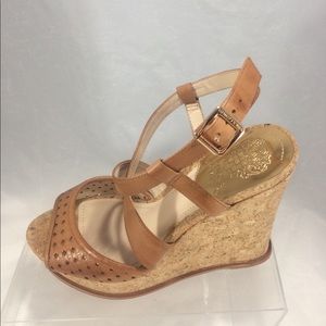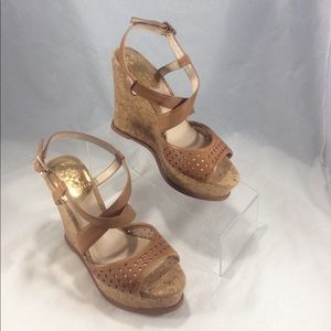 Brand New Vince Camuto brown leather & cork wedges
