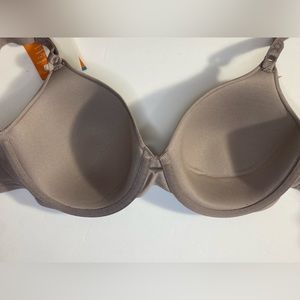 NWT Warner’s brand underwire bra size 34C. Very soft material. Full coverage. Back smoothing panels. Adjustable straps. One very small black dot on the front that looks like a pen mark that will most likely come out with washing.
