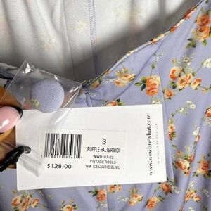 Brand New WeWoreWhat Women's Ruffle Halter Midi Dress Vintage Roses Purple size S NWT