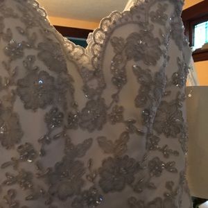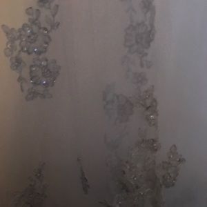 Never worn. Beautiful in detail. The train stunning. Exquisite. Classy and elegant