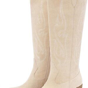 Brand New Western Cowboy Boots for Women - Beige Suede - Knee High Wide Calf
