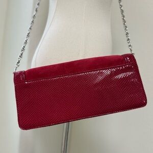 Brand New White House Black Market Burgundy and Silver Leather Crossbody Clutch