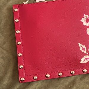 Brand New White House Black Market Maroon Studded Floral Large Wristlet Clutch