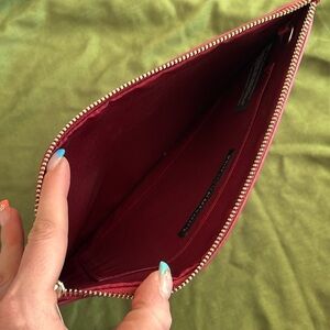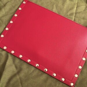 Brand New White House Black Market Maroon Studded Floral Large Wristlet Clutch