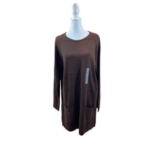 Brand New With Tags Eight Eight Eight Long Sleeve Sweater Dress Brown Stripes L