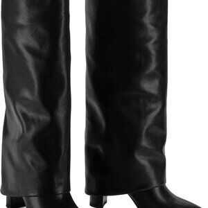 Brand New Women Fold Over Knee High Boots in Black PU — adding a chic touch to any look.