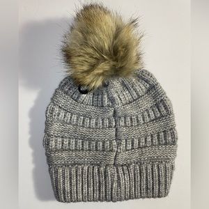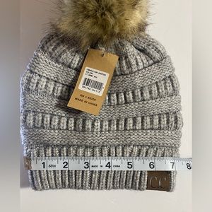 Very cute NWT women’s CC brand grey beanie with pouf. Measures 7” with lots of stretch.