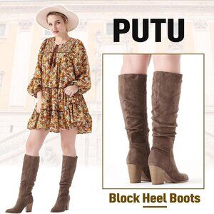 Features: These sleek knee-high boots in faux suede boast a pointed toe and slouchy silhouette, measuring about 14.96 inches in shaft height. The chunky heel of approximately 3.15 inches offers all-day support, perfect for styling with skirts, dresses, or jeans.