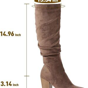 Brand New Women's Pointed Toe Knee High Faux Suede Slouch Boots with Chunky Heel