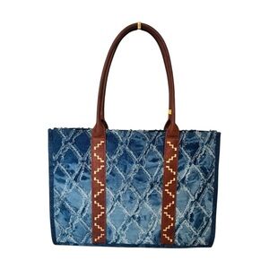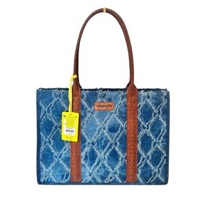 Brand New Wrangler Tote Bag - Blue Jean Color with Brown Leather Handles